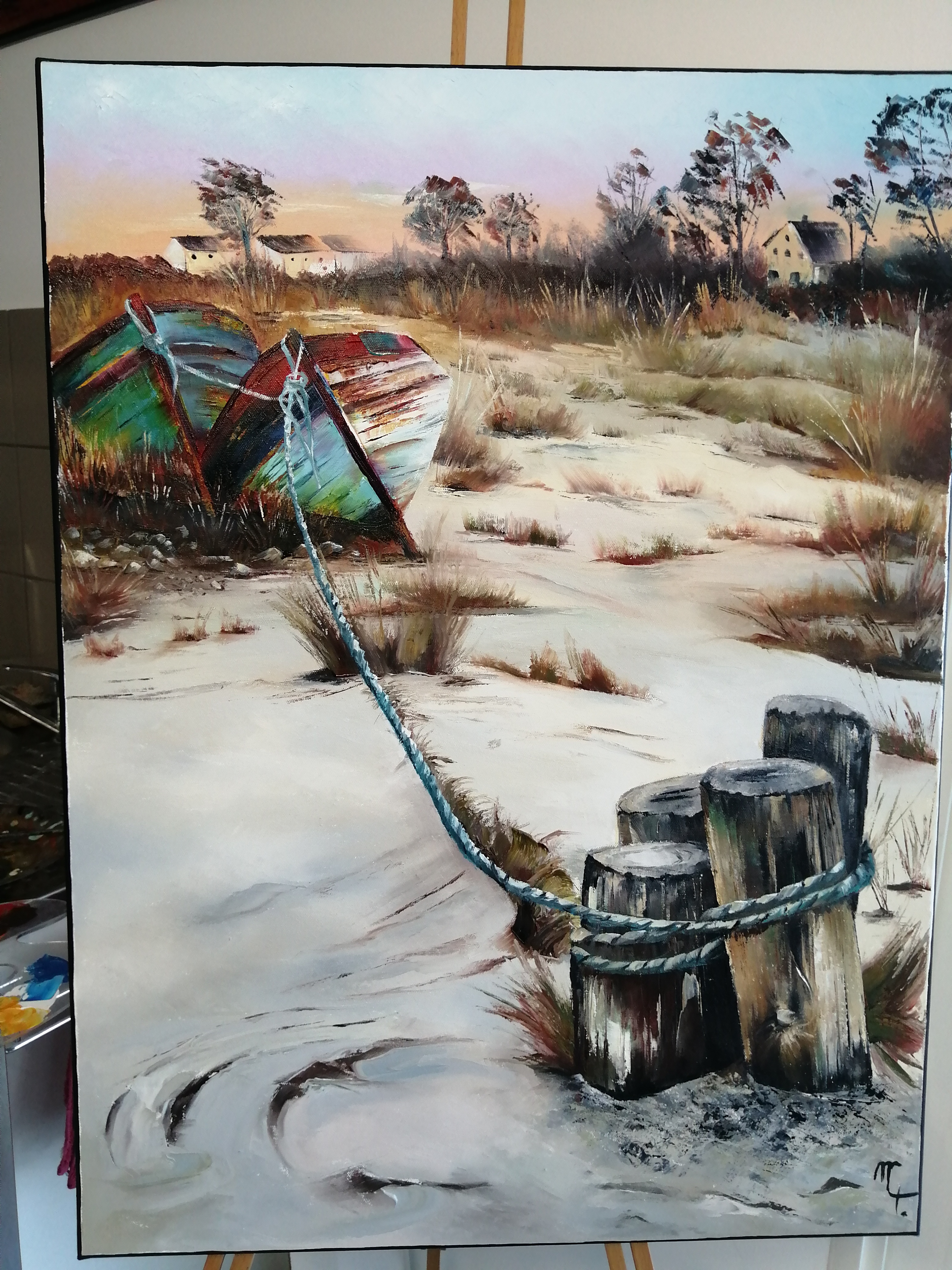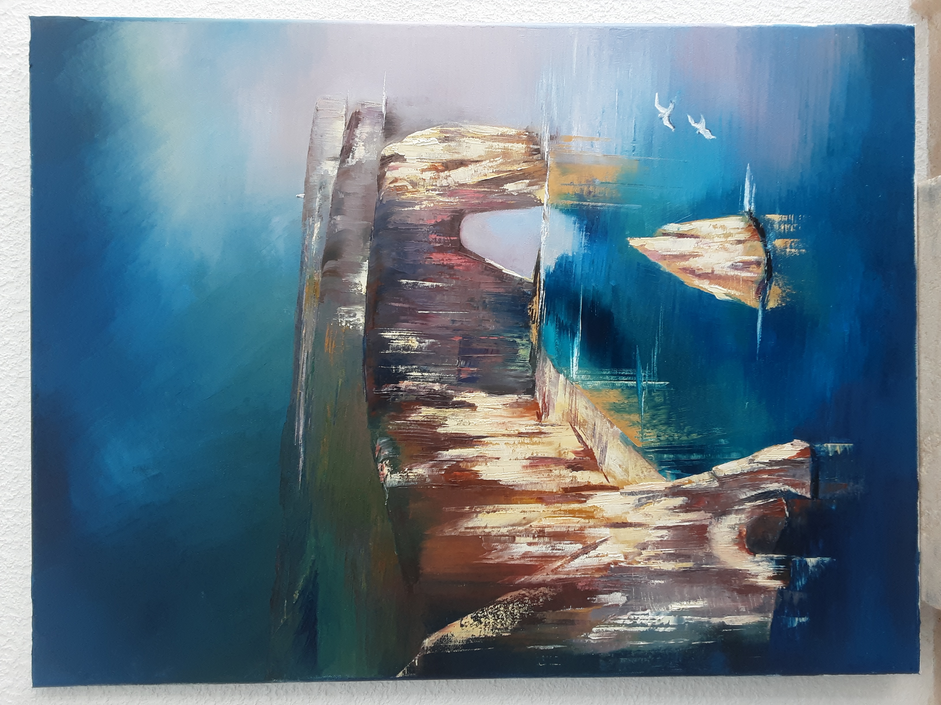 Martine Desroziers, fidèle à la technique de l’huile au couteau, partage son amour des couleurs avec intensité. Elle traverse actuellement une période bleue, empreinte de douceur et de profondeur.