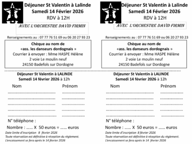 A l'occasion de la Saint-Valentin, le club des Danseurs dordognais propose un repas dansant animé par David Firmin.