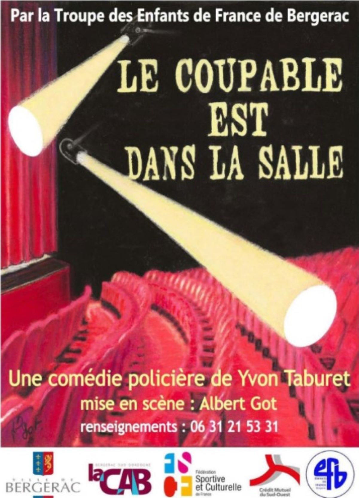 Venez voir une représentation théâtrale par Les Tréteaux de Bergerac de la comédie de Yvon Taburet ' Le coupable est dans la salle.